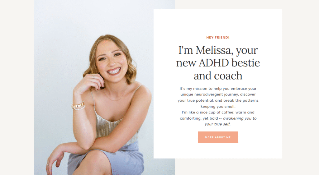 Start by crafting a headline succinctly conveying your brand’s unique value proposition. In Melissa’s case, she wants her audience to break through the limitations holding them back so they can fulfill their dreams.